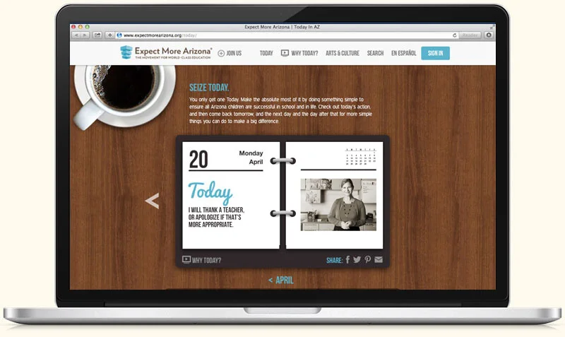 Expect More Arizona works tirelessly to ensure that all Arizona students have access to a world-class education. The Today campaign was created to allow all of us to contribute to that mission, one day, one action, one child at a time.