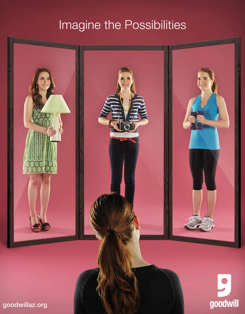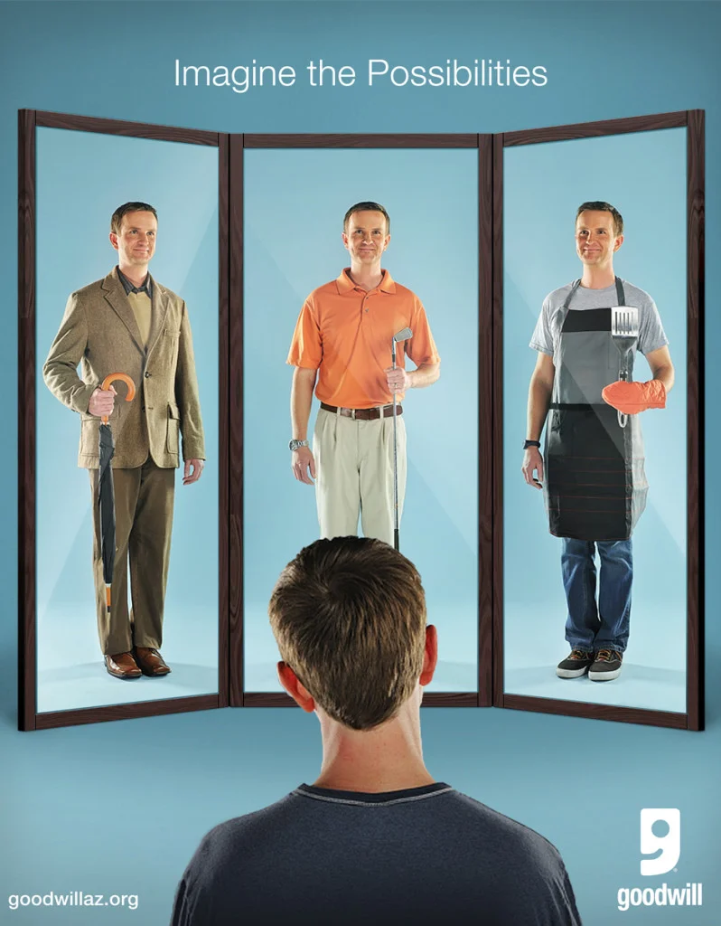 Donations to Goodwill of Central Arizona drive retail sales. Retail sales support Goodwill’s workforce development efforts. Those efforts put people to work. Everyone contributes. Everyone wins. It’s a simple but powerful equation and telling that story was the basis for the work below.